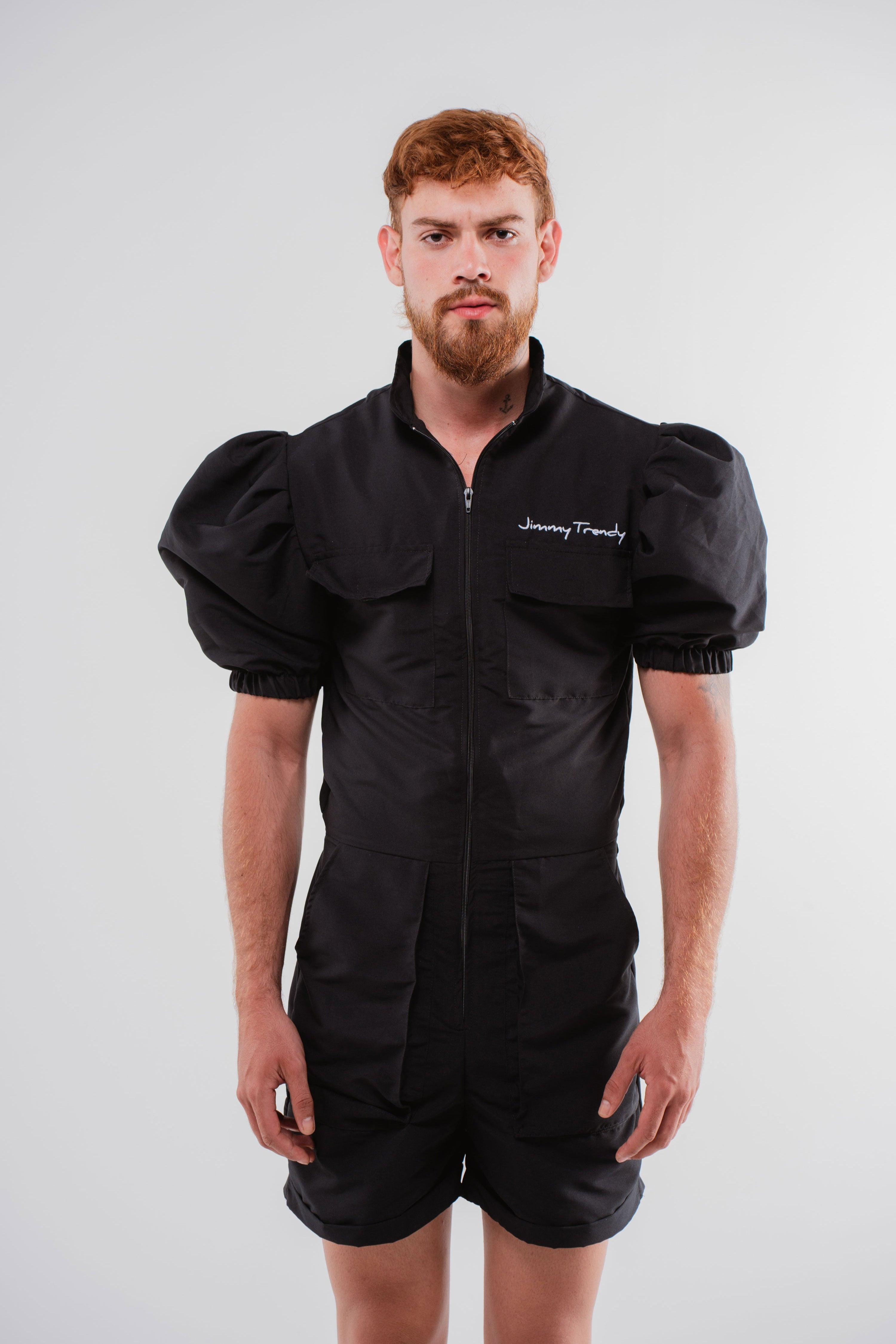 Own the spotlight in this statement one-piece designed for all bodies and all moods. This romper features dramatic puff sleeves, a front zipper, and roomy utility-style pockets that blend fashion with attitude. The elastic waistband creates a comfortable, flexible fit that adapts to every body shape—so no sizing guesswork, just slip in and serve.